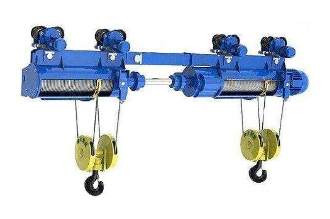 制、度閃現及遙控等輔佐功能。是用傳動軸相銜接的兩個葫蘆為雙速鋼絲繩電動葫蘆。適用于吊運超長工件或物品。鉤距可根據用戶要求進行非標規劃制造。雙鉤鋼絲繩電動葫蘆為定做產品。